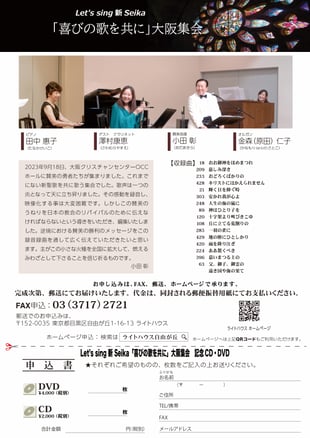 2023年9月18日 大阪クリスチャンセンターでの賛美礼拝の記録DVD・CD