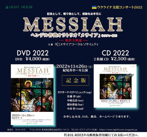 2022年11月26日 紀尾井ホールでのメサイア コンサートの記録DVD・CD